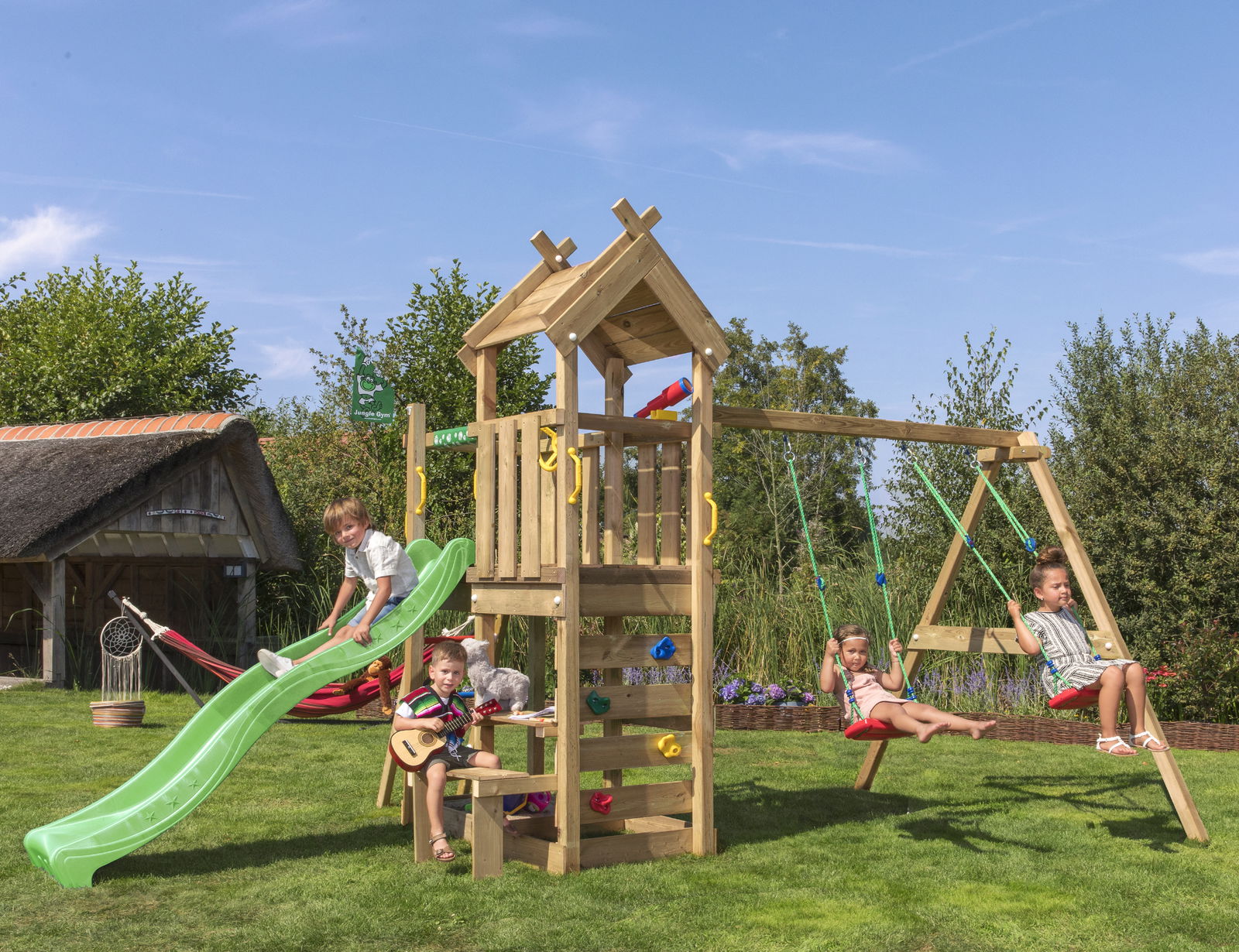 Legetårn Jungle Gym Teepee m/2-Swing Module 200 og grøn rutschebane